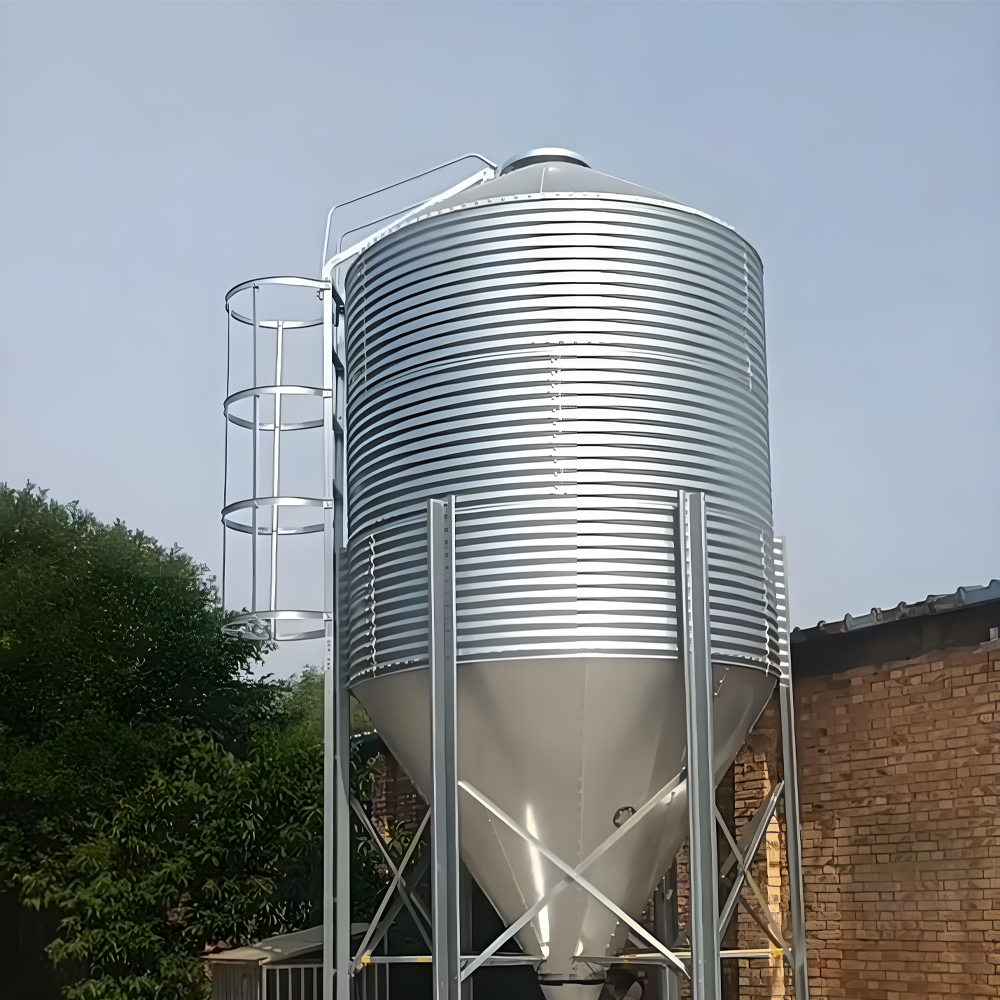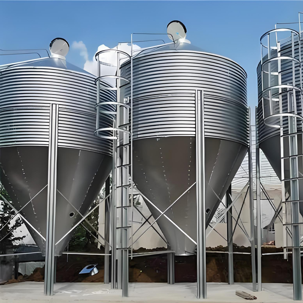 Кормовые бункеры (силосы) для хранения кормов изготовлены из оцинкованного листового металла плотностью 275 граммов на квадратный метр, а все винты выполнены из стали марки 8.Болты из высокопрочной стали с горячим цинкованием класса 8, устойчивые к коррозии, окислению и высоким температурам, обладающие высокой прочностью и длительным сроком службы.